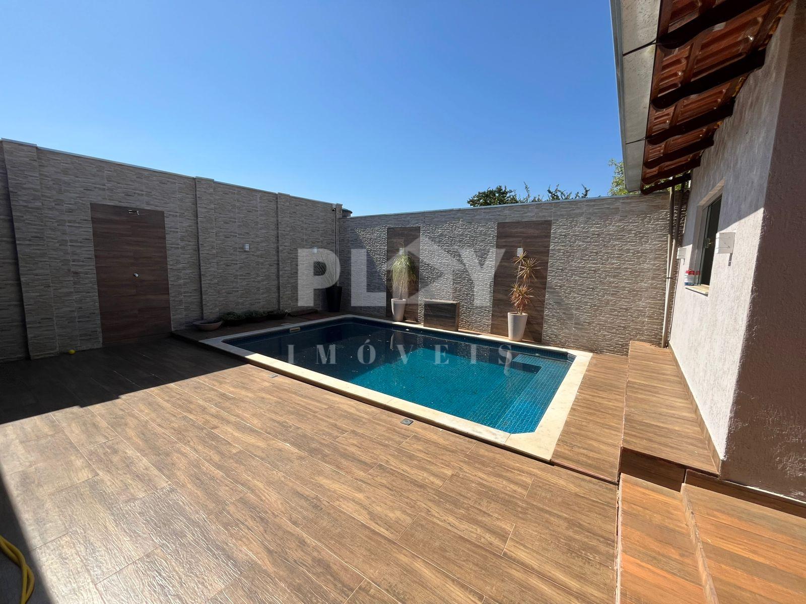 Terreno 12 x 25 3 quartos (2 planejados e com ar condicionado) - 1 deles com área de estudos/escritórios Sala com painel Copa Cozinha completa com armarios e cooktop Lavanderia com armarios Area gourmet com churrasqueira e cozinha planejada Piscina de 3,5 x 5,5 aquecida, com hidro, cascata e iluminação multicores Um quarto de fundos com banheiro Energia fotovoltaica com capacidade de geração de 800 a 1000kwh/mês Sistema de câmeras intelbrás em toda a área externa Sistema de alarmes intelbrás com sensores internos e externos Garagem para 2 carros Casa toda em porcelanatos portobello Interfone com câmera Portão eletrônico jetflex