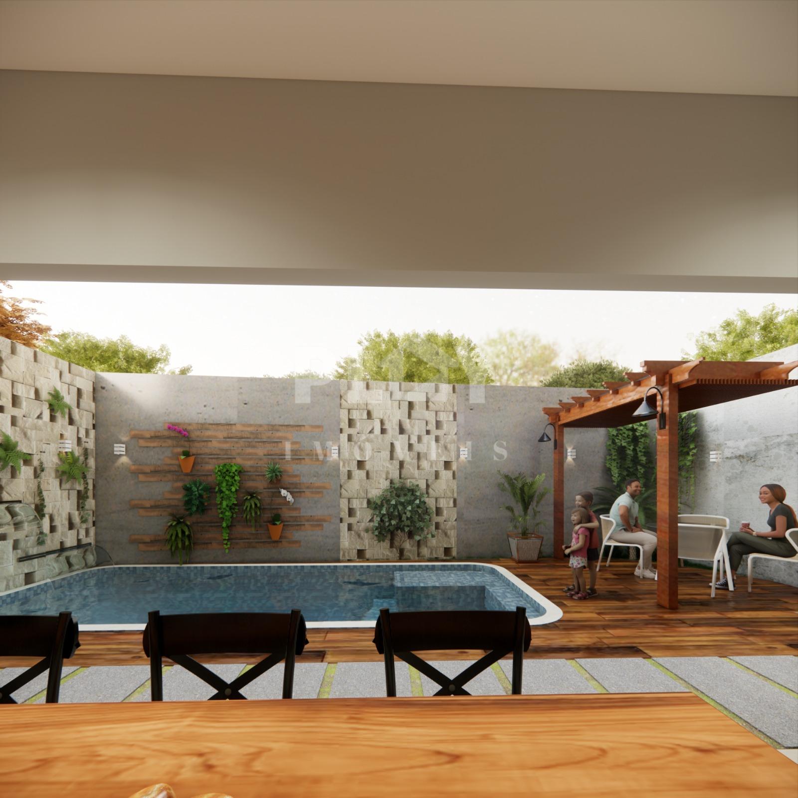 CASA A VENDA Bairro Canada3 Passos MG ? 2 quartos ? 1Suite Master ?1 Closet ?Sala de estar ?Sala de jantar ?Sala de TV ?1 Cozinha ?Despensa ?2 Lavabos ?Lavanderia ?Piso em porcelanato ?Banheiro social ?Garagem coberta ?Área gourmet ?Piscina ?Pergolado ? Terreno 208,59 m2 ? Construção 243,50 m2 ? Aceita financiamento Obs, Imóvel na Planta, acabamento médio em blindex, Negociável acabamento