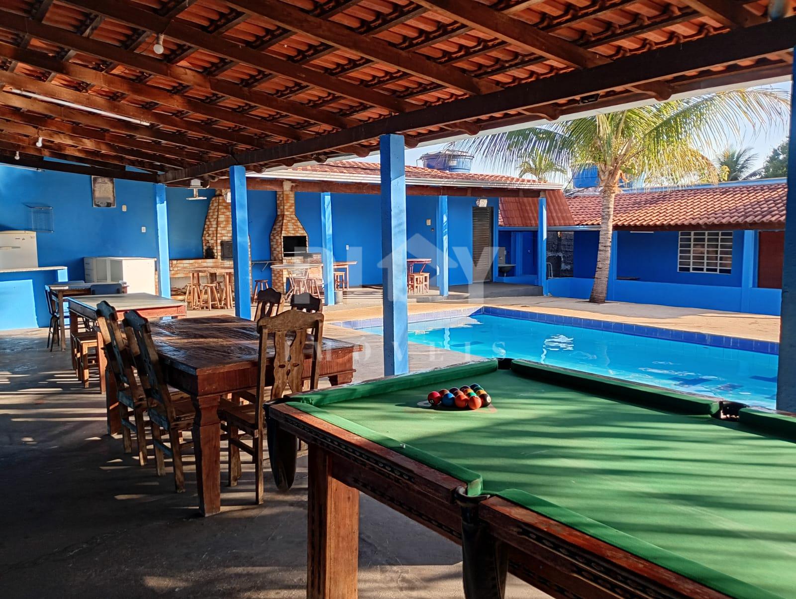 área de lazer com churrasqueira fogão a lenha piscina com capacidade para 60 mil litros